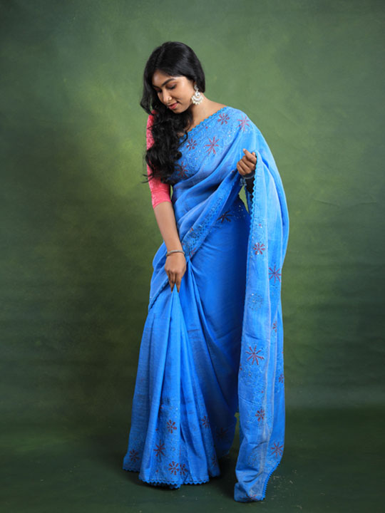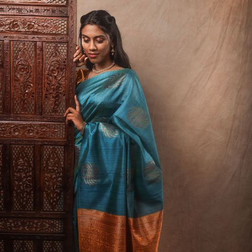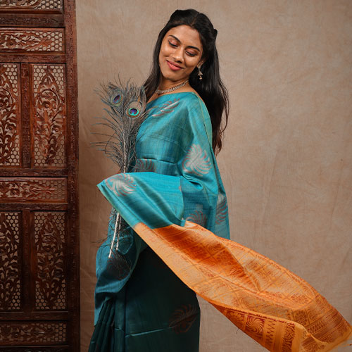 Aqua blue with purple soft silk