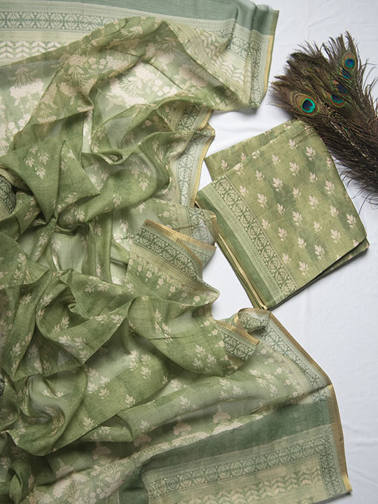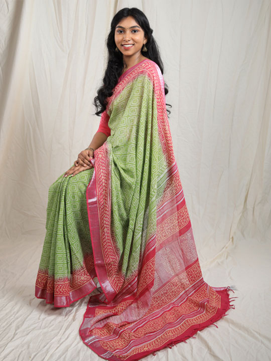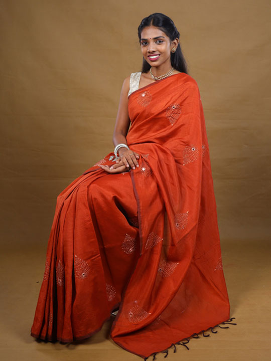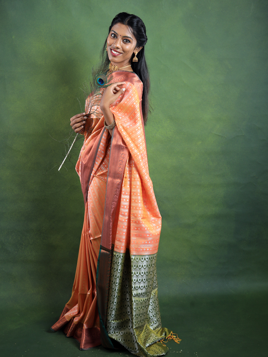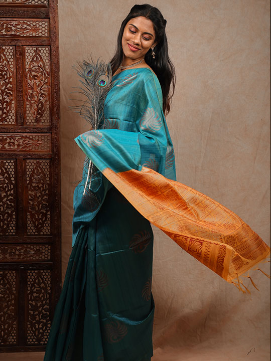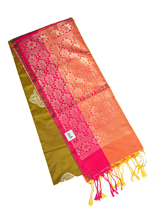 Burnt sienna with green soft silk