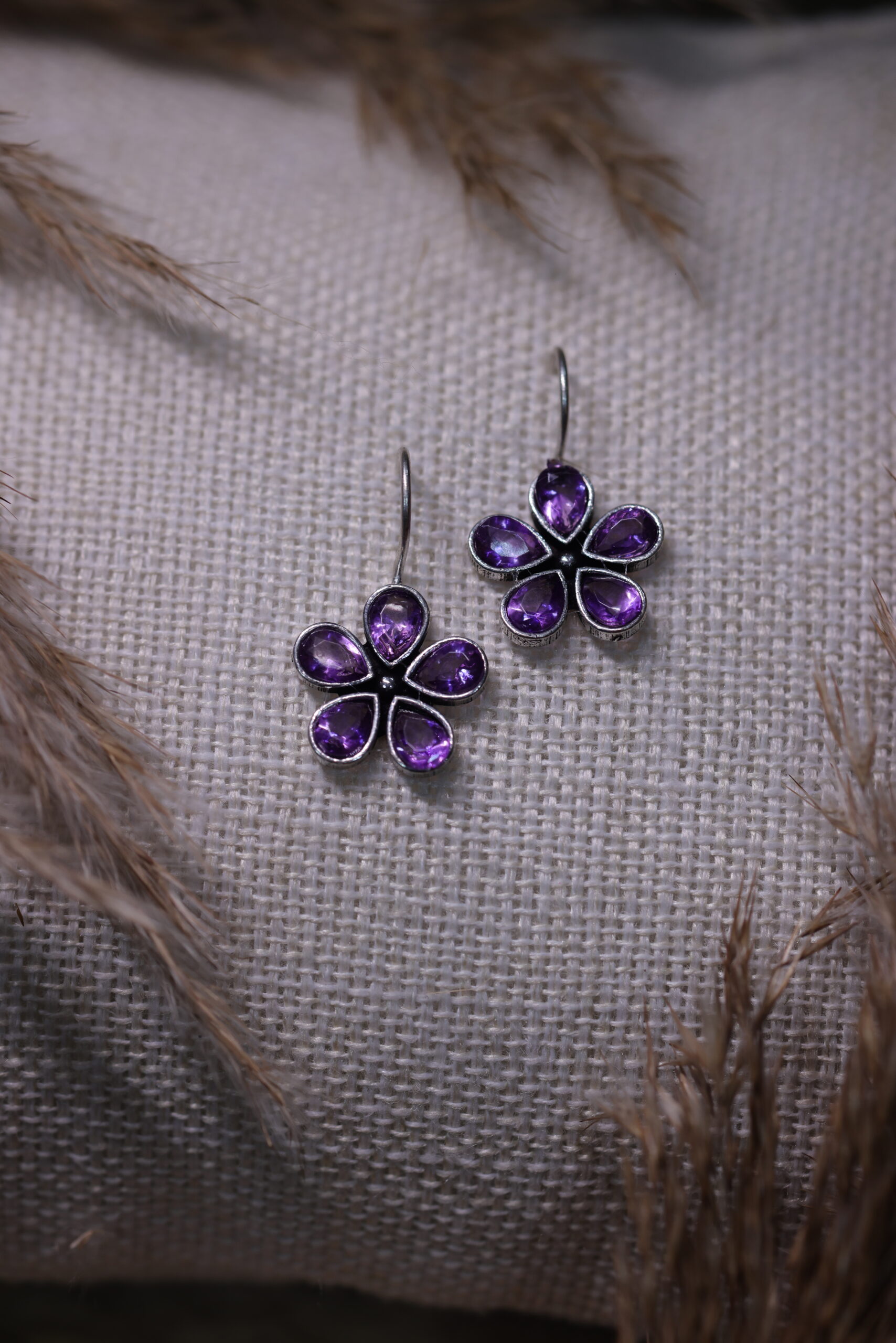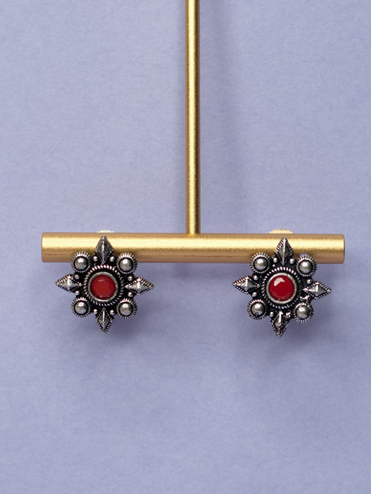 Semi flora Oxidised stud