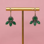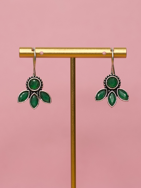 Delicate oxidized dangler with petal design, featuring a small single colour stone throughout the design.