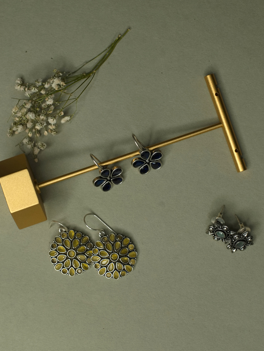 *Delicate oxidized stud with floral design and a bold centre stone